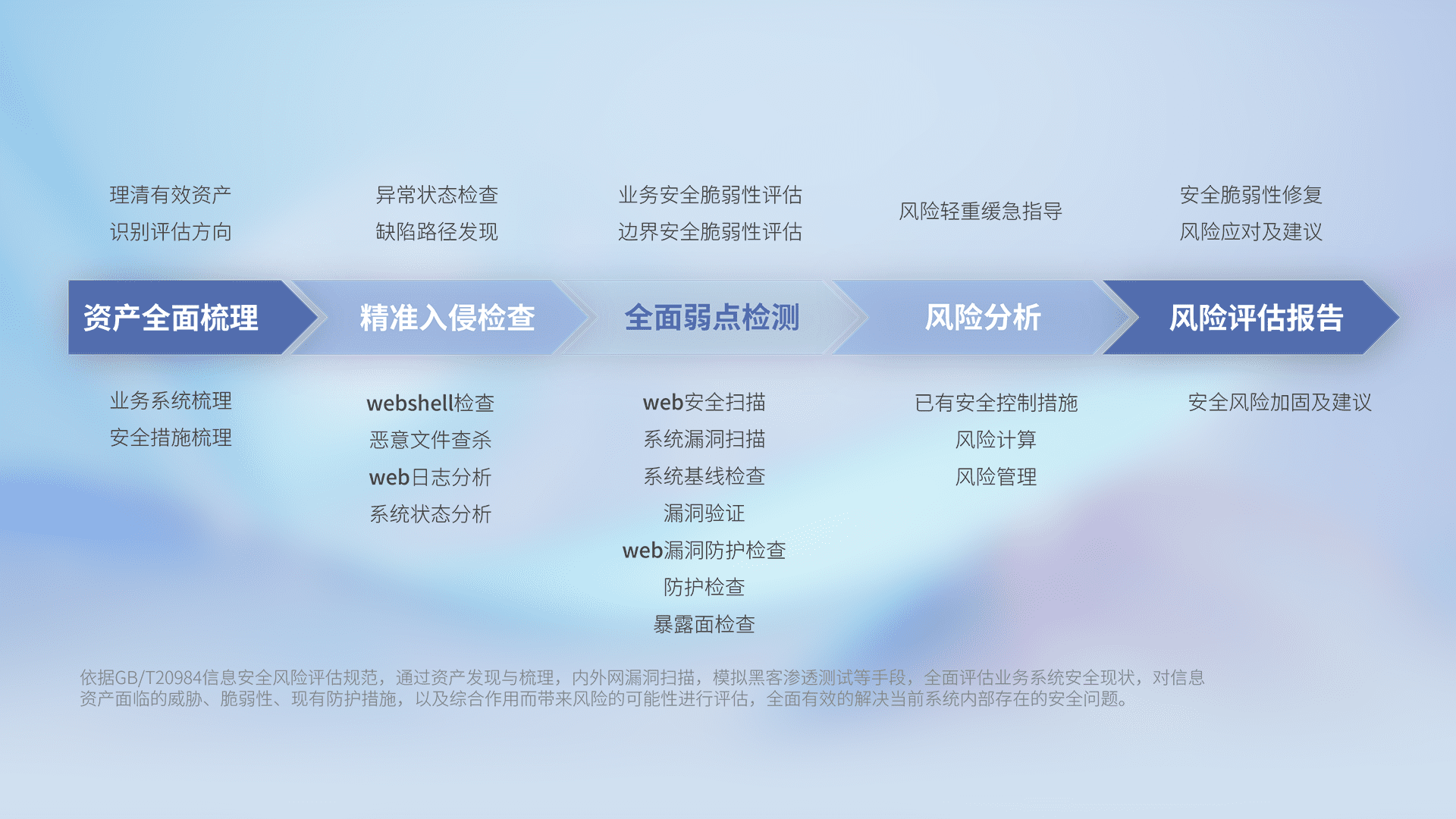 针对客户行业特性,,,,以专业的安全服务+多厂商联合解决方案提供专属的一站式安全管理服务,,,帮助客户全面感知网络空间威胁,,基于识别、、、、检测、、、、分析、、、、防护、、、监测、、、响应的服务理论模型,,,,从方案咨询、、、集成交付、、、评估验证、、优化加固、、、运维运营,,,,致力于为客户提供完整的闭环管理式安全服务。。。以实战经验为客户打造高抵御风险的安全体系,,,,帮助客户发现威胁、、对抗威胁、、处置威胁,,,,不断积累安全对抗能力,,持续保障数字化安全。。。